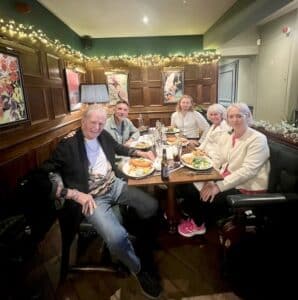 On Sunday 10 of us met up for a roast dinner in a pub near to where Sami and Billy live. Again – just being able to spend time together was a special gift – and there were roast potatoes and yorkshire pudding as well as great conversation and Rudy cuddling ! This visit I have really been able to enjoy talking with Genevieve and Sophie – our 2 eldest granddaughters. Seeing Gen as a mum of 2 now but holding her own as a woman and not just being a mum was a joy. Sophie is more of a career woman but she totally dotes on her niece and nephew and spends as much tome as she can with them. I am so proud of the women they have become and wish I could spend more time around them.