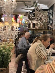 London looked beautiful with lots of decorations for Christmas but one of the most amazing places was a Thai restaurant called Poppys in Hammersmith. We ate there will Billy and Genevieve and the meal was sensational. But the decor is something else – I can’t even remember if there were any Christmas decorations or if it was just the usual decor – over the top doesn’t even begin to describe it – there isn’t a square inch that isn’t festooned with something. Maybe a giraffe with a monkey on its back or a chandelier hung at waist height ? Anyway we ate thai fish cakes, the best pad thai any of us have eaten in a very long time, green shrimp curry, and several other dishes I can’t recall. You take your own beer or wine and the price is so reasonable it is ridiculous.