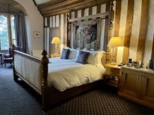Later that day we picked up a rental car and we drove up to a gorgeous country house hotel in Northamptonshire – close to where my sisters live. The hotel is called Fawsley Hall and 12 years ago we had a family party there to celebrate my 60th and Bob’s 70th birthdays. It has changed hands since then and the new owners are Hand Picked Hotels. Let me tell you we had a wonderful huge historic room , a beautiful bed to sleep in and fabulous service. The picture at the top is the view from our bedroom window – spellbinding ….