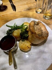 The first night we were there we went out with my sister Jane and her son Sam for a scrumptious meal in the archetypal British country pub. It is called the Fox and Hounds and we have eaten there in the past. The setting is lovely and the food and service extremely good. On a coldish winter’s evening there is no finer place to be !