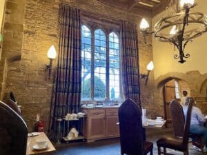 The next day my other sister Anne and her husband – also Bob ! – came and met us for lunch at Fawsley Hall. It was pouring with rain so we were delighted to have a long leisurely lunch chatting and catching up with them both. In fact we didn’t go out that day – in the evening we ate in the main hotel restaurant and finished off with cheese in the great hall…..